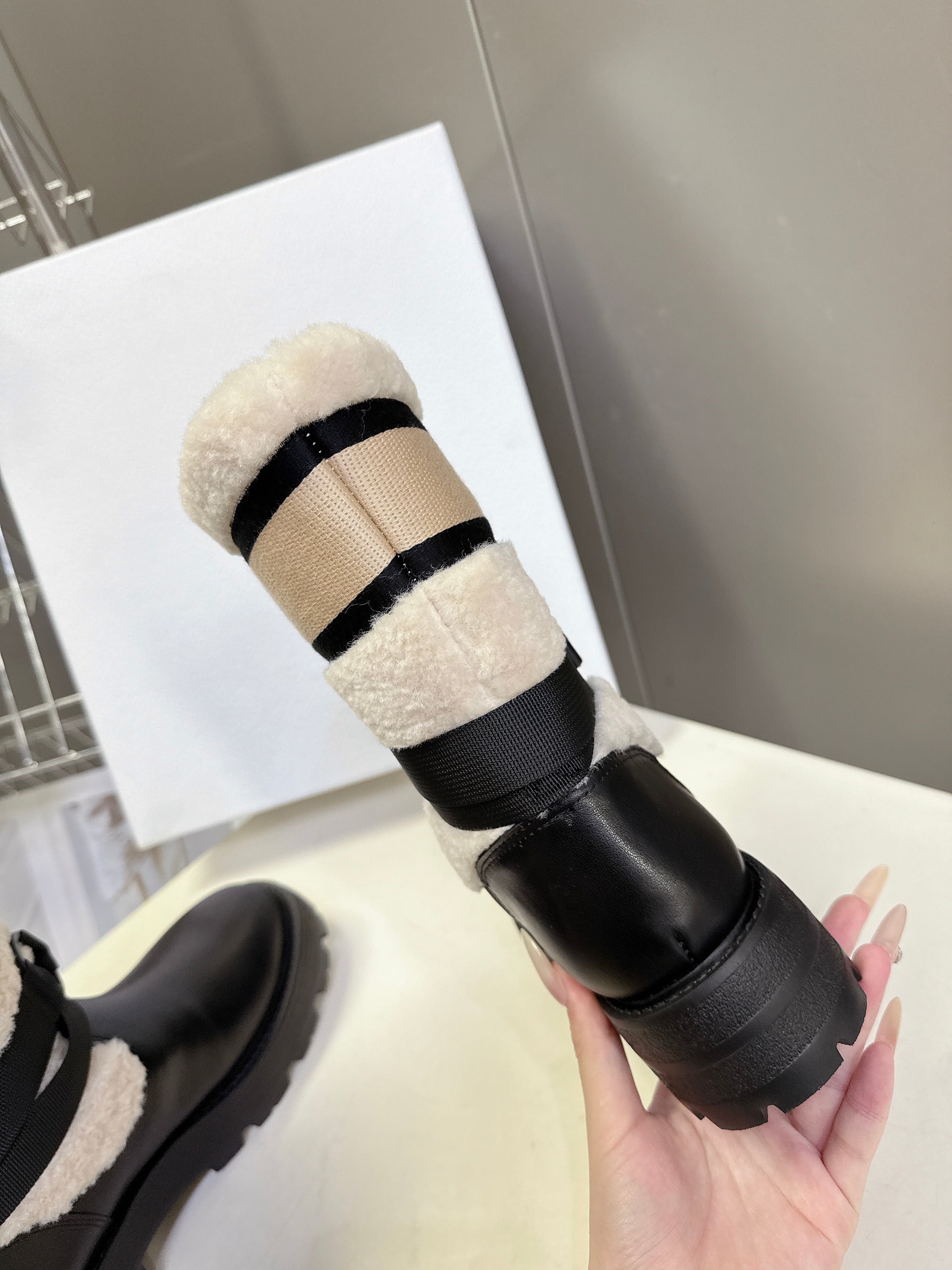 DIOR 25S D-MAJOR ANKLE BOOTS IN BLACK LAMBSKIN AND CREAM WHITE WOOL