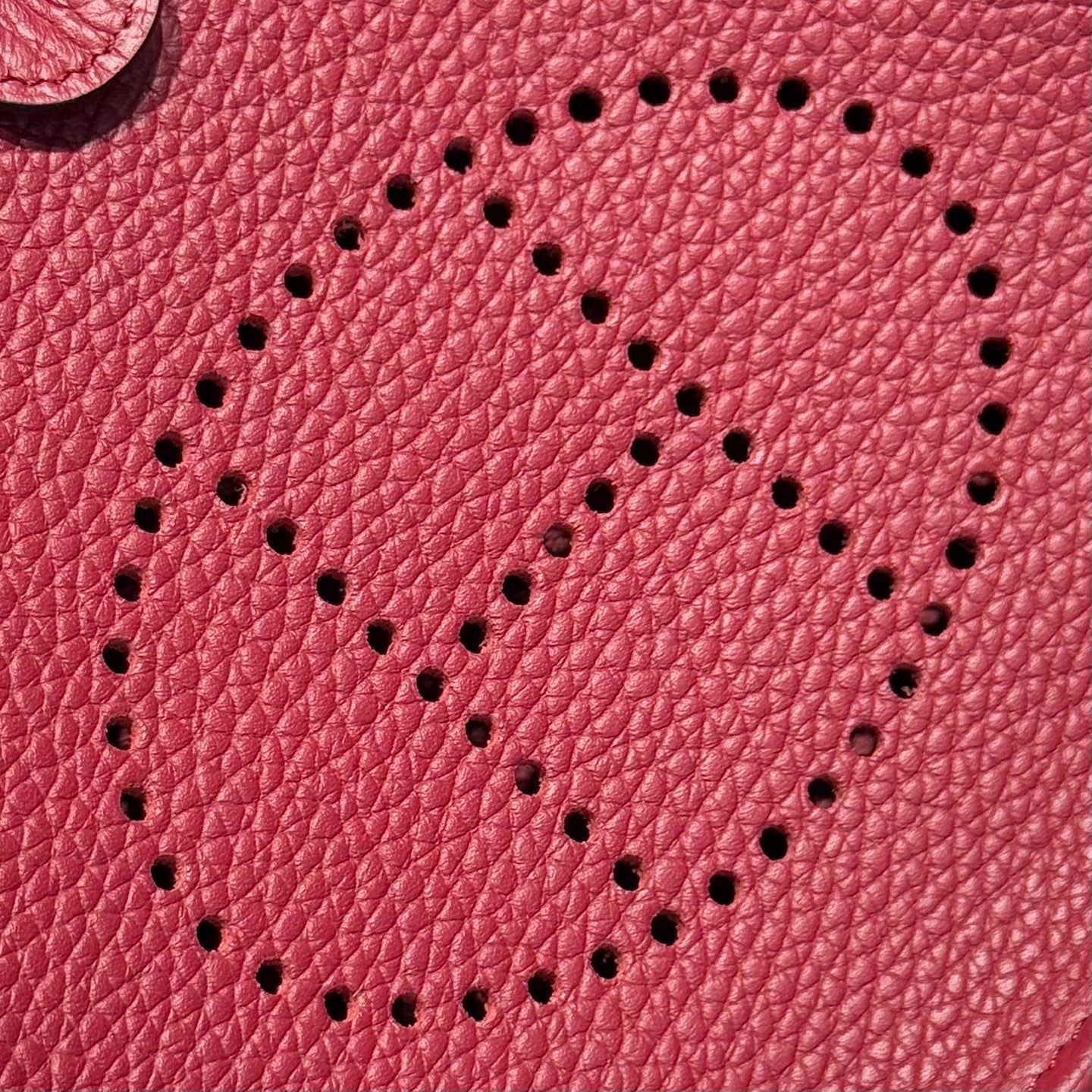 HERMES 25S MINI EVELYNE 18 IN BURGUNDY PATTERNED STRAP CALFSKIN SILVER HARDWARE