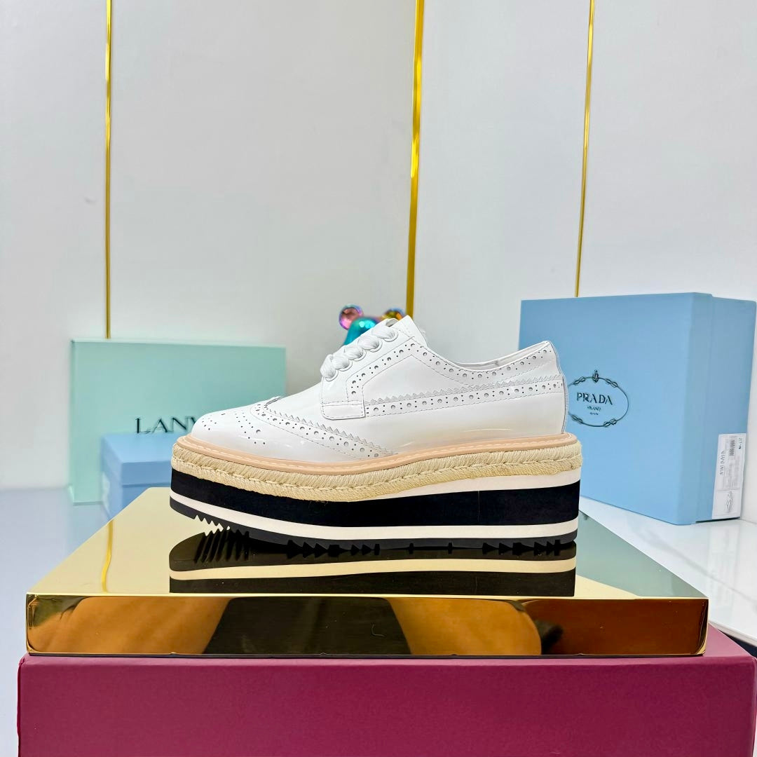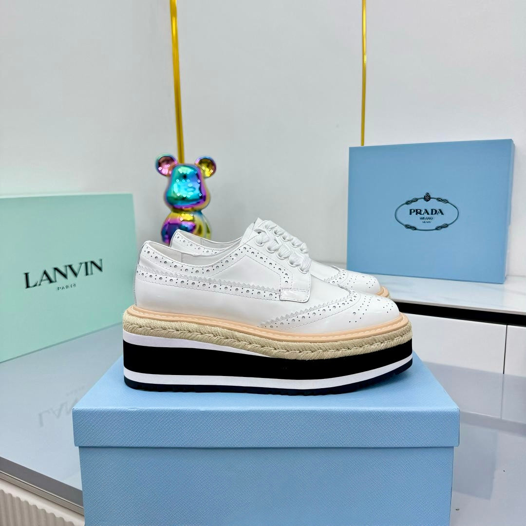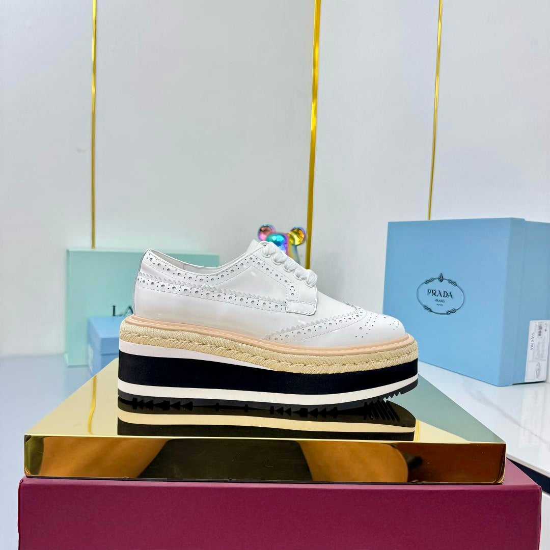 PRADA 25S FLAT WEDGE SHOES 60MM IN WHITE CALFSKIN
