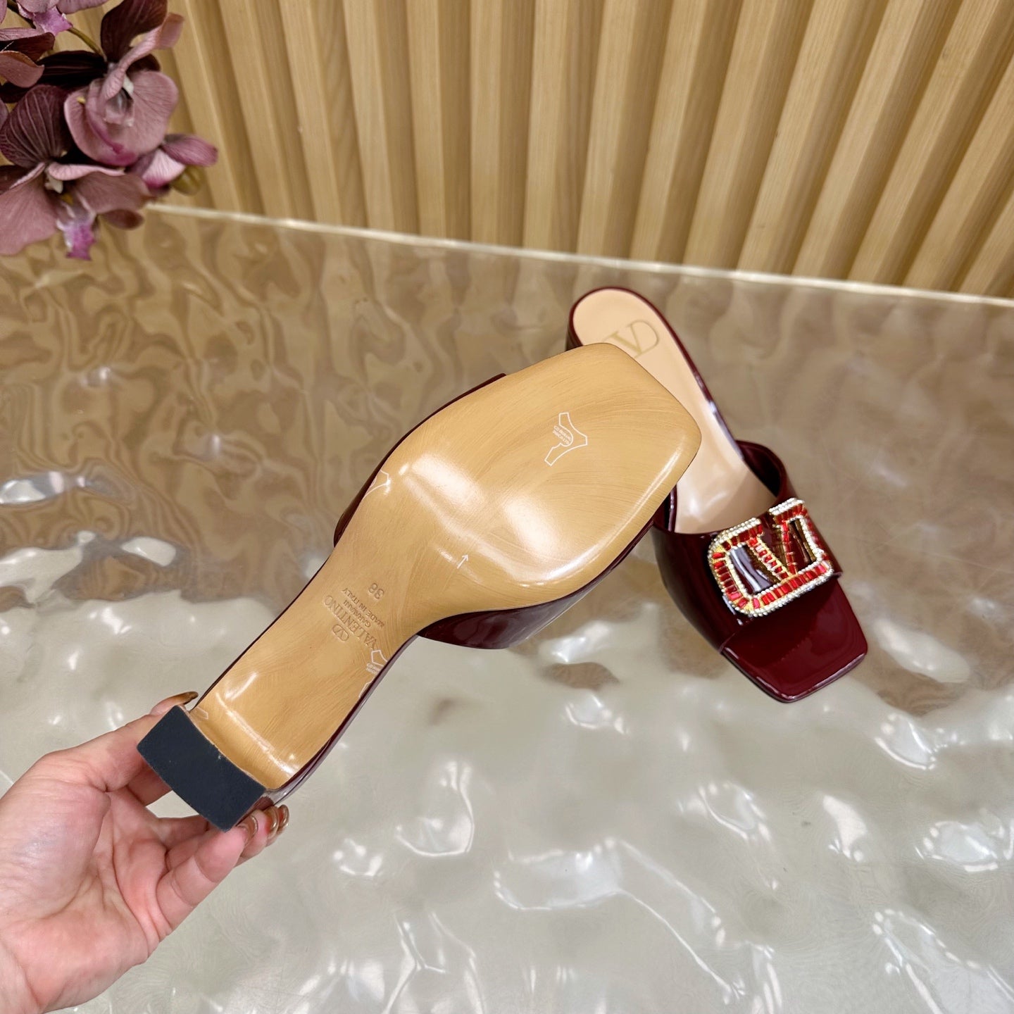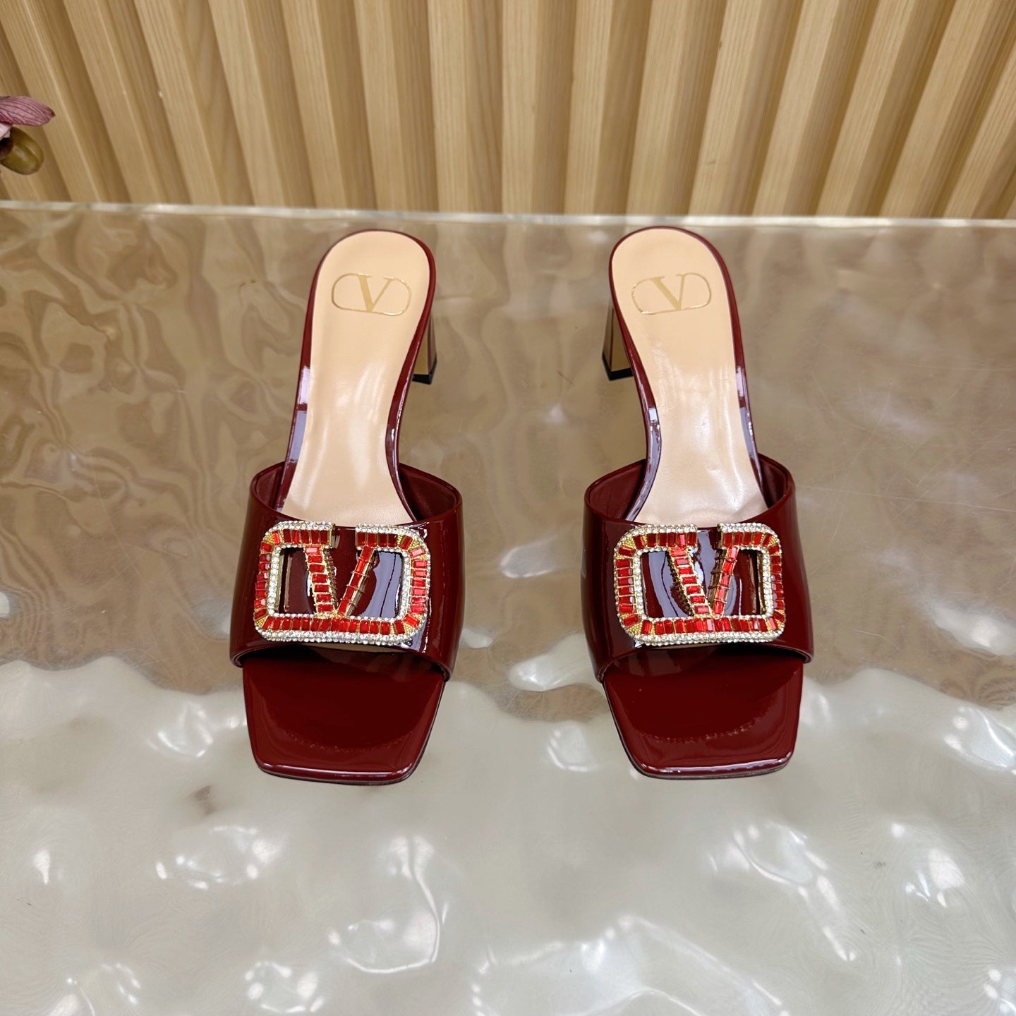 VALENTINO 25S HIGH-HEEL MULES 60 MM IN DARK RED PATENT CALFSKIN WITH CRYSTAL-EMBELLISHED STRAP