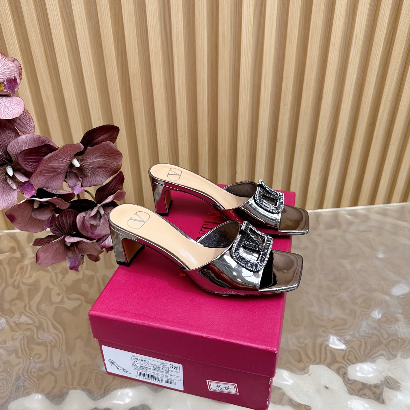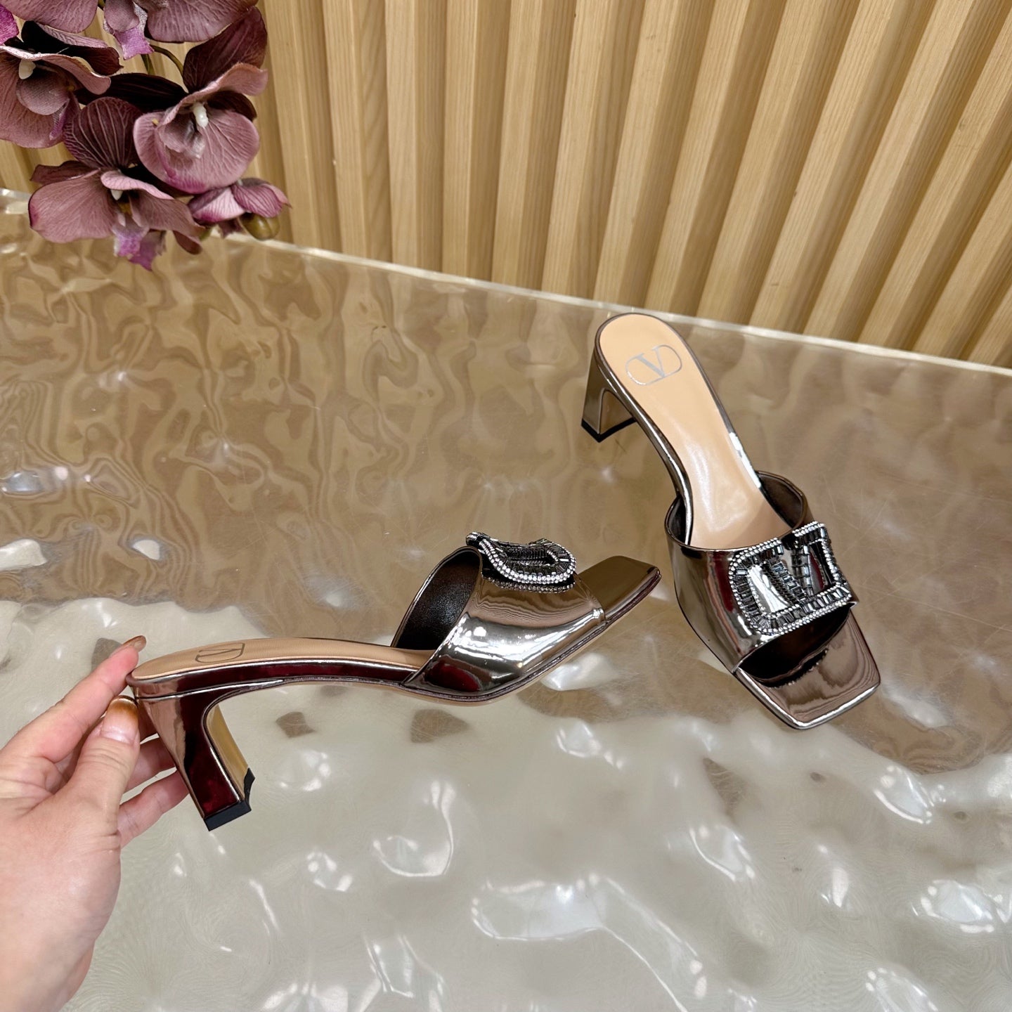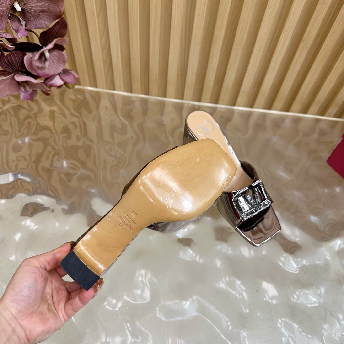 VALENTINO 25S HIGH-HEEL MULES 60 MM IN METALLIC SILVER PATENT CALFSKIN WITH CRYSTAL-EMBELLISHED STRAP