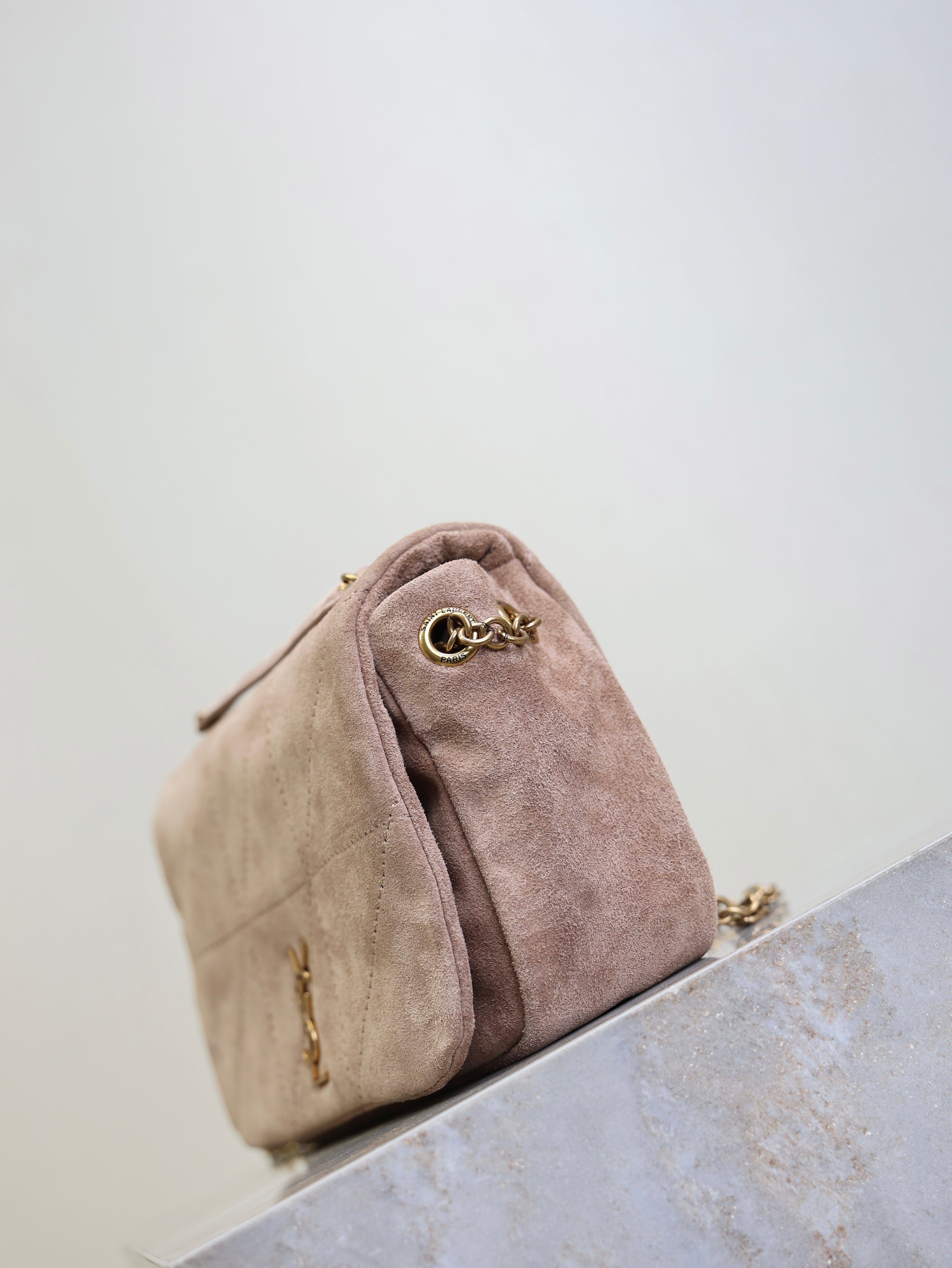 YSL 25S JAMIE 4.3 MINI 20 IN DUSTY ROSE BEIGE SUEDE GOLD HARDWARE