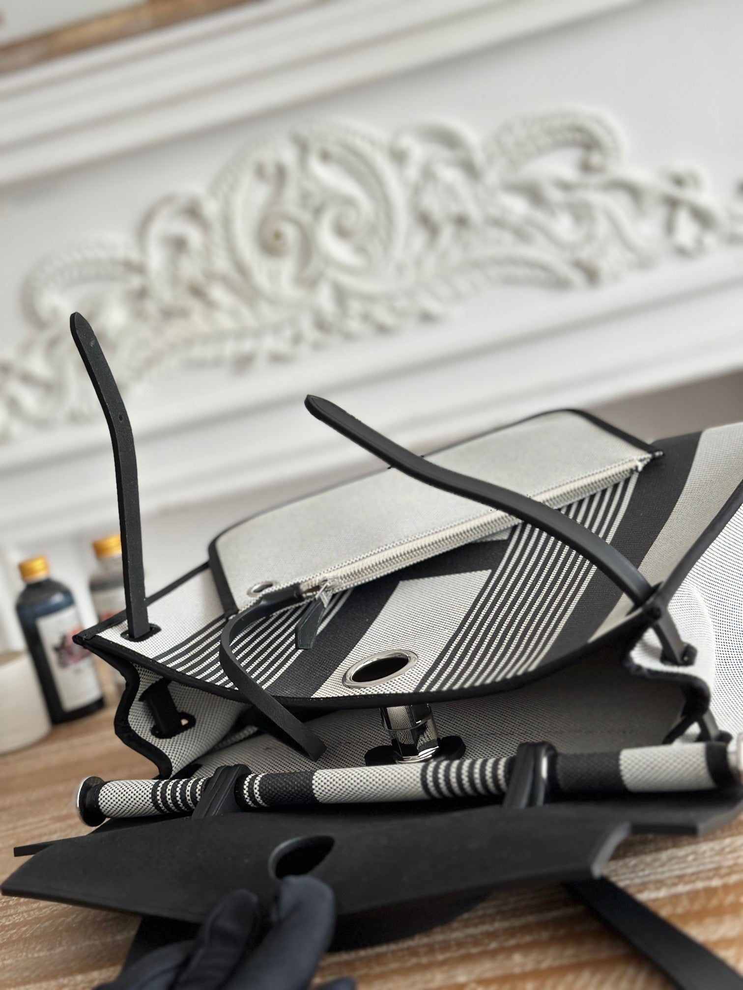 ZIP CABINE 31 BAG IN BLACK MIX WHITE CANVAS AND CALFSKIN